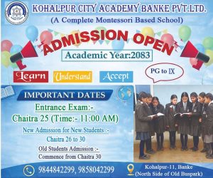 कोहलपुर, चैत्र १७, अन्तर्राष्ट्रिय जातीय विभेद उन्मूलन दिवसको अवसरमा कोहलपुर नगरपालिकाले दलित अधिकारसम्बन्धी अन्तरक्रिया कार्यक्रम भव्य रूपमा सम्पन्न गरेको छ । ‘दलित समुदायको न्यायमा पहुँचका लागि राज्य संरचनाको प्रभावकारी परिचालन’ भन्ने राष्ट्रिय नाराका साथ आयोजित उक्त कार्यक्रम कोहलपुर–११ स्थित पार्टी प्यालेसमा सम्पन्न भएको हो । कार्यक्रमका प्रमुख अतिथि कोहलपुर नगरपालिकाका नगर प्रमुख पूर्ण प्रसाद आचार्यले […]