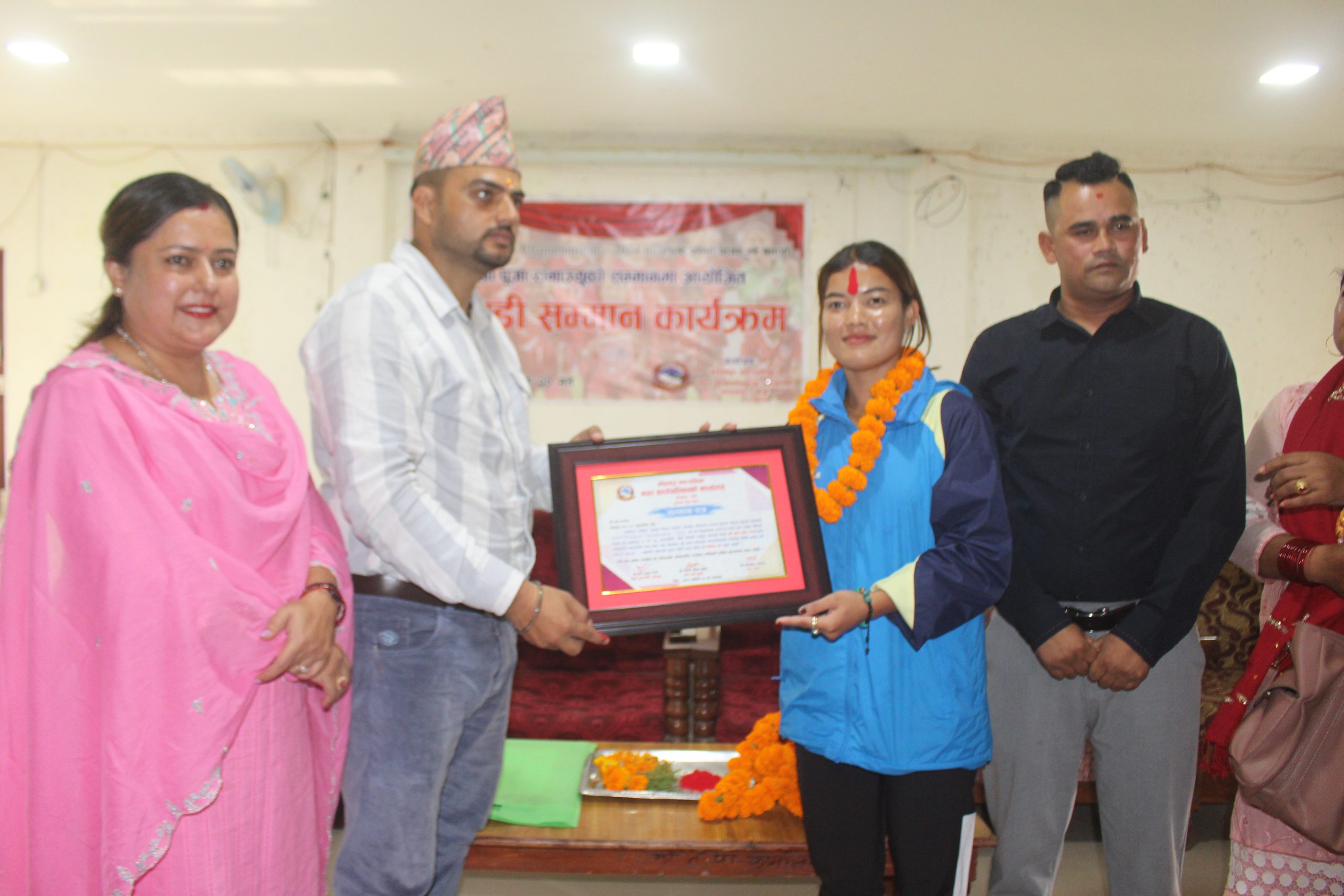 राष्ट्रिय फुटबल खेलाडी पूजा रानालाई कोहलपुर नगरपालिकाले नगदसहित सम्मान गरेको छ ।